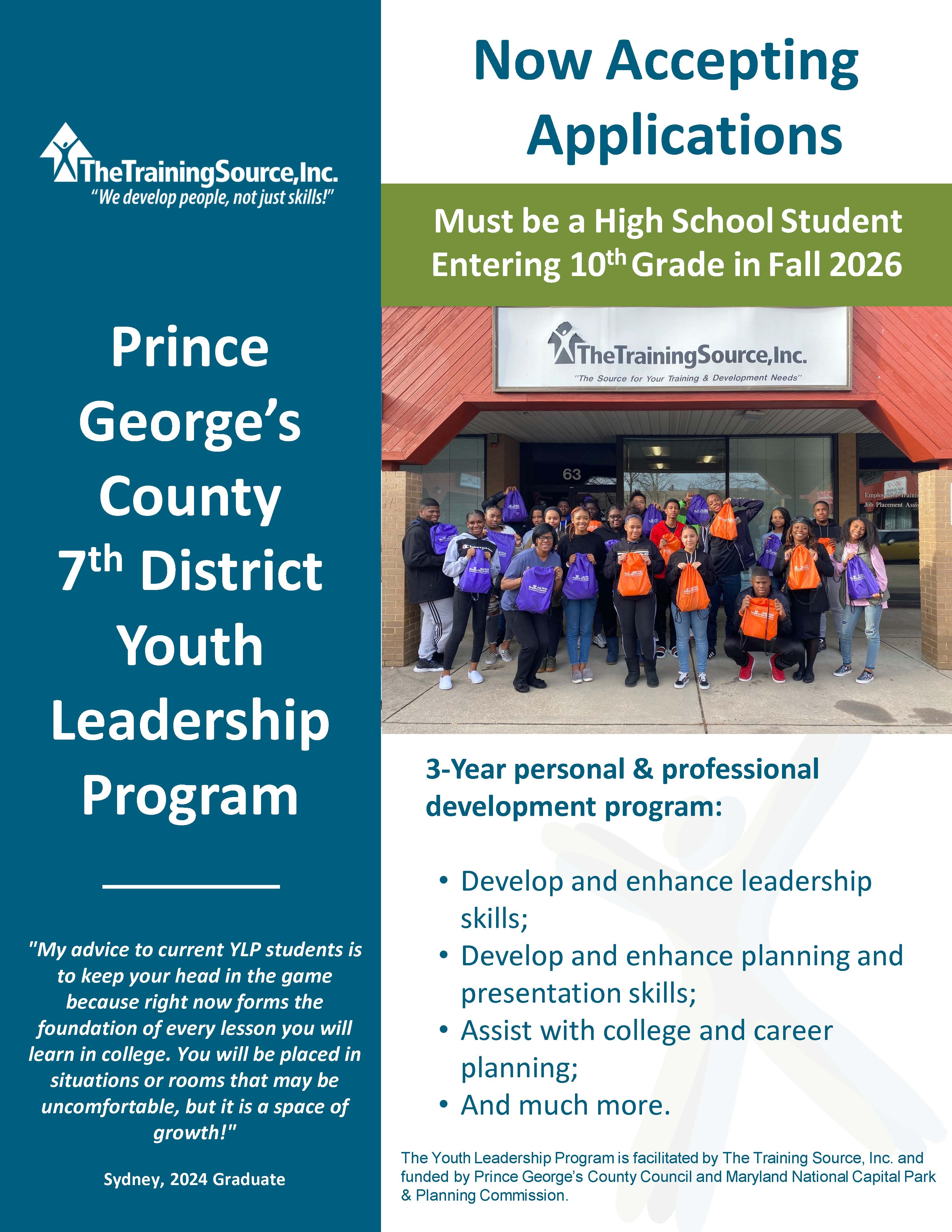 If you know of someone who may be interested, please contact us at (301) 499-8872 or ylp@thetrainingsource.org.